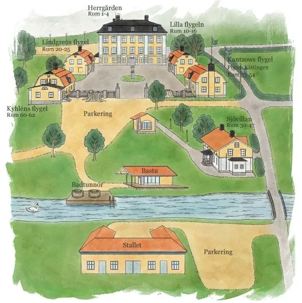 Under dagarna har vi tillgång till Schenströmska herrgården, samtliga flyglar samt “Stallet”.