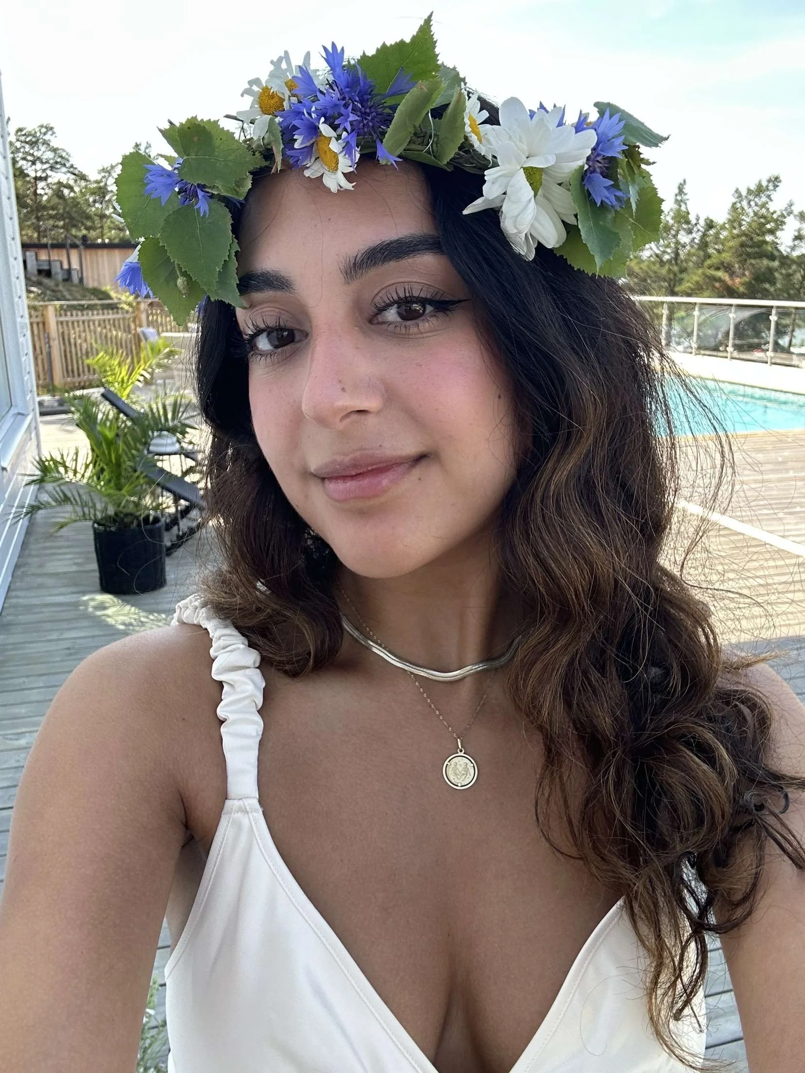 Brudens “tvilling”! Jasmine var brudgummens klasskompis i universitetet och lärde känna bruden tack vare att deras gemensamma vänner tyckte att de var så lika. “Jaz” är alltid gladast i rummet och alltid bäst på fest!